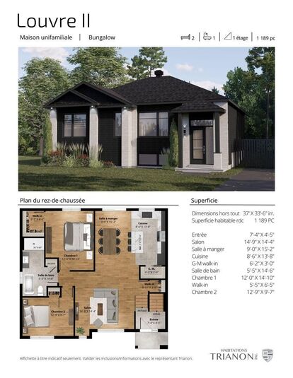 - Superficie : 1189 pi² + sous-sol