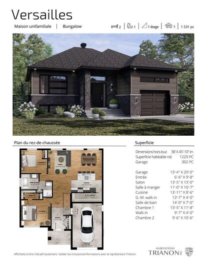 Si vous recherchez un bungalow qui marie le charme intemporel avec la fonctionnalité moderne, le Versailles avec son aire ouverte et son garage intégré répondra à vos attentes.